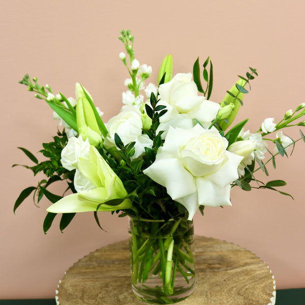 Classic white is a chic and thoughtful choice, no matter the occasion. Let the flowers speak for you with "Serenity".